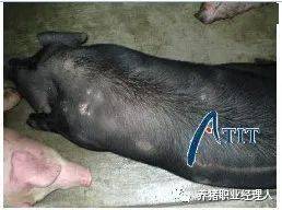 记得2014年的冬天,在冰天雪地的齐齐哈尔,当时一个2000头母猪场正发蓝耳,我见到了后备母猪和头胎妊娠母猪发猪丹毒,猪只皮肤上菱形疹块突起非常明显,严重的猪甚至整个背部皮肤发黑翘起,象一个“乌龟壳”盖在猪身上,后来从“ 乌龟壳”下面再长出新肉。