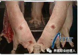 图3 屠体皮肤可见若干个菱形斑,猪只皮肤出现菱形丘疹时,应怀疑感染猪丹毒。
