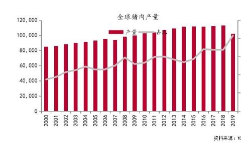 我们先来了解一下猪肉的全球格局。中国是全球猪肉第一大主产国。2000年以来,猪肉全球供应逐步增加,但因为2018年非洲猪瘟的影响,中国生猪产能的断崖式下降对全球猪肉供给产生巨大影响。USDA数据显示,2019年全球猪肉产量为1.02亿吨,较2018年下降1096万吨。全球猪肉贸易市场较小,2019年全球猪肉贸易量在841万吨,占全球猪肉产量不到10%。猪肉贸易以猪肉为主,活猪主要以种猪引种为主。