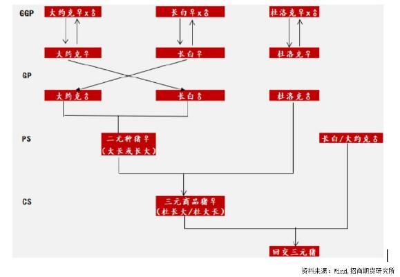 三元留种的模式就是指三元猪中的母猪与长白猪或大约克猪的公猪交配,为什么不选择杜洛克呢?因为若与杜洛克交配会出现红毛猪的可能,且杜洛克猪相对长白或大约克猪繁殖性能较差。