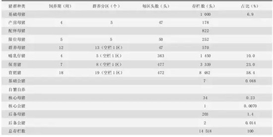 一般以能繁基础母猪为基数来决定猪场的规模,本案例以能繁基础母猪数量1 000头来进行计算。