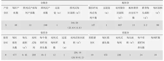 其他如后备栏和公猪舍,根据其存栏数和面积需求计算。在布局上每多一列,要增加一条通道,所以一般的栏舍内部布局不会超过4列。栏舍需求计算可参见表3。