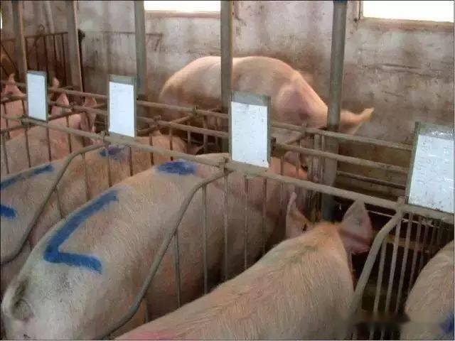 5) 可用颜色标记笔在母猪背部点一个点,表示最近几天密切注意这头猪,它有可能要发情。