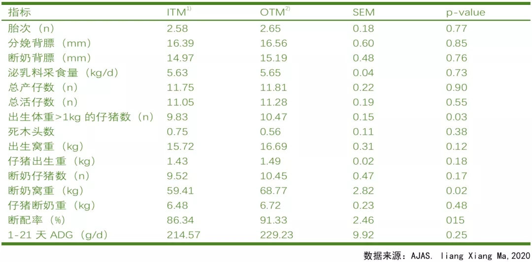 母猪中不同可发酵纤维水平生产性能的影响