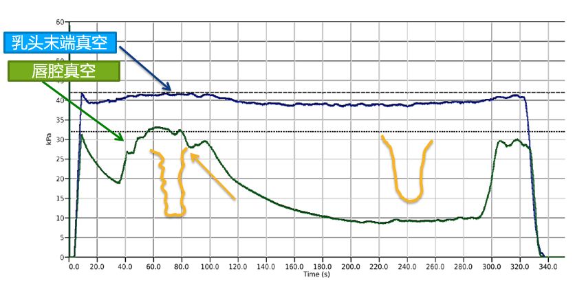 如果唇腔真空出现了升高,原因往往是第二个密封出现了问题,乳头末端真空上窜至唇腔,导致唇腔真空升高。
