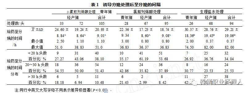 表1 从注射激素到分娩的时间间隔 (d)