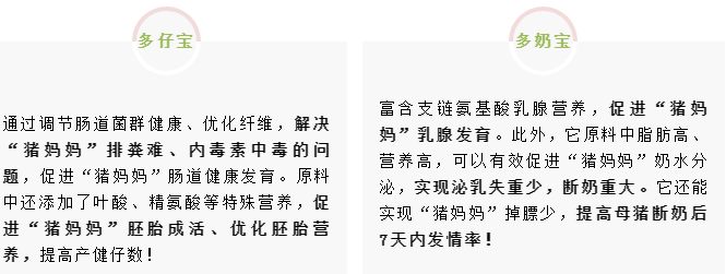 推出了喜扬扬“后备宝”和“诱情宝”母猪配合料