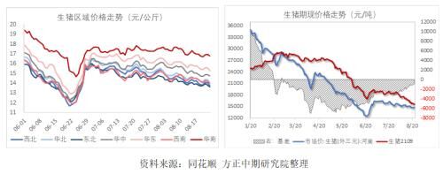8 月初开始,生猪9月合约再度开启跌势。主要因现货持续疲软以及仓单注册开始后市场以交割的期现回归逻辑为主导。现货市场方面,除华南地区猪价走势较为坚挺外,全国其他地区生猪价格近期均出现缓慢震荡走弱的迹象。从供应面来看,生猪供给量没有出现环比明显增加的迹象,随大体重生猪被持续消化,大猪存栏量明显降低,为了保持资金周转,养殖场出栏节奏正常,没有明显压栏惜售的现象。从需求端来看,受新冠肺炎疫情的影响,屠宰场订单下滑明显,白条走货不畅,压价意愿较强。在当前卖方本就无太多议价权的市场中,猪价呈现较为萎靡的态势。