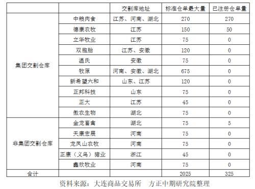 目前大商所生猪期货所有交割库均为指定厂库。我们知道,标准仓单分为仓库标准仓单和厂库标准仓单两种,仓库交割的成本是比较高的,尤其是运输成本和仓储成本,所以常常会导致交割不充分,一个品种如果完全没有交割的话,那就是一个纯资金盘了,无法起到为现货服务的作用。为了方便买卖双方交割,交易所推出了厂库信用仓单政策,用厂家代替了传统意义上的仓库,以生产能力和相关信用保证作为出具仓单的依据,从而减少了卖方的交割成本。这些厂家自身拥有较强的现货加工或者贸易能力,可以在没有对应现货的情况下,提前注册仓单;在买入方要提货时,给一个时间限度,再进行交割。对于生猪来说,能够大大节省交割品的饲养成本。而当前我们看到的仓单注册量较少,很有可能是由于厂库交割的卖方为了节省仓储费用,一直到进入交割月甚至在交割前几天才会陆续开始有注册仓单的行为。