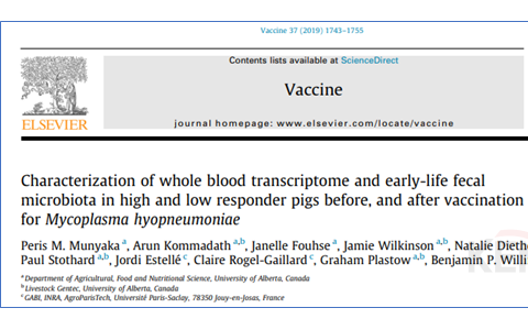 在加拿大和法国的两个不同的猪群的试验中均发现,猪粪便中微生物群,比免疫接种时血液免疫细胞中的基因表达更能预测猪对疫苗接种的反应(Munyaka et al.2019,Munyaka et al.2020)。
