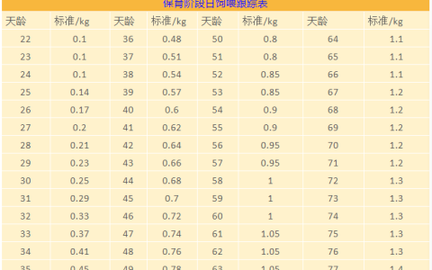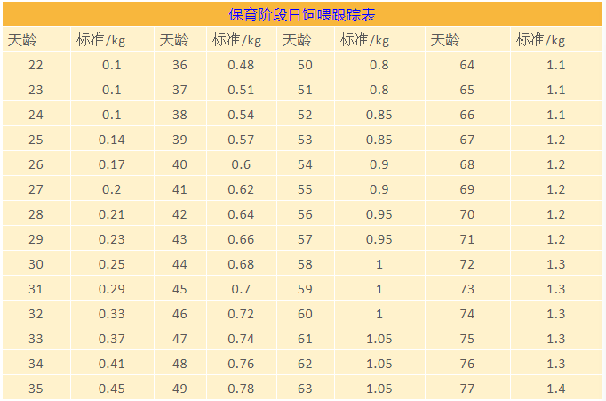保育阶段日饲喂跟踪表