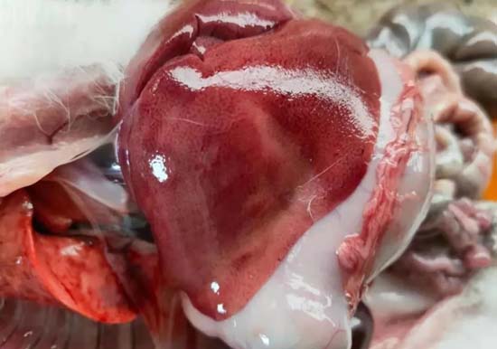 多见于流行初期,病兔无症状而突然死亡。有时于死前尖叫一声,向前一跳,倒地蹬腿、伸颈,于数分钟内死亡,死后角弓反张。少数病兔从鼻腔中流出泡沫状血液,鼻部发青。解剖,气管有环状出血;肺出血,瘀血,水肿;肝脏肿大,变脆,色泽变淡呈土黄色;部分肾脏脾脏出血,胸腺出血等。