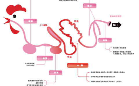 肠道的主要功能是将食物转化成为可以吸收的营养物质,以便于营养物质可以更好地吸收和利用,用于完成生长发育和产蛋,还有机体免疫力的提升。