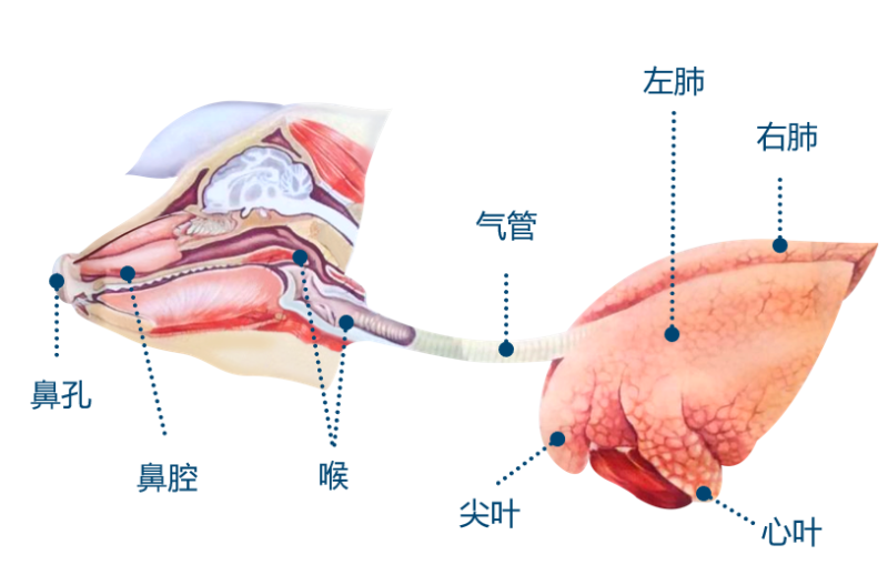 呼吸道疾病病原常常也非常复杂,是由多种细菌、病毒、支原体、寄生虫、环境应激和猪只抵抗力降低等诸多因素相互作用引起的呼吸道疾病,也常称为呼吸道综合征(PRDC)。