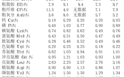 DDGS作为蛋白质饲料,粗蛋白质和氨基酸的含量及其消化率为最重要的营养指标。Cramwell等(1993)的研究表明,不同来源的 DDGS之间,粗蛋白质(范围23.4%~28.7%)和赖氨酸(范围0.62%~0.86%)含量差异极大。其它氨基酸含量也有差异,但差异程度不及赖氨酸。Spiehs等(2002)检测了 1997-1999年间新酒精企业生产的DDGS样品118个,结果表明,在所检氨基酸指标中,赖氨酸的变异最大,其次为蛋氨酸。