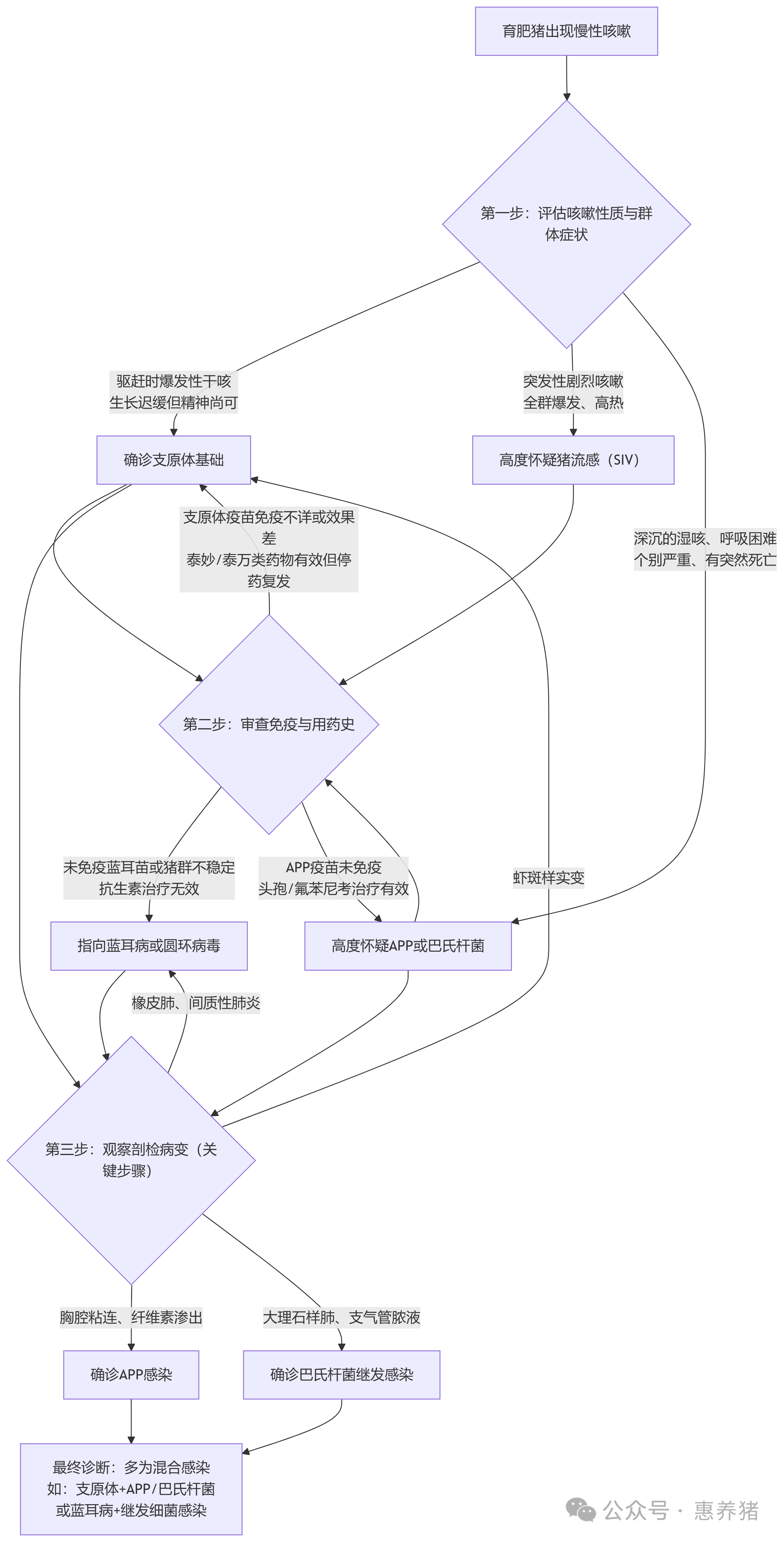 面对一栏咳嗽的育肥猪,我们可以遵循以下流程图所示的逻辑路径进行排查:
