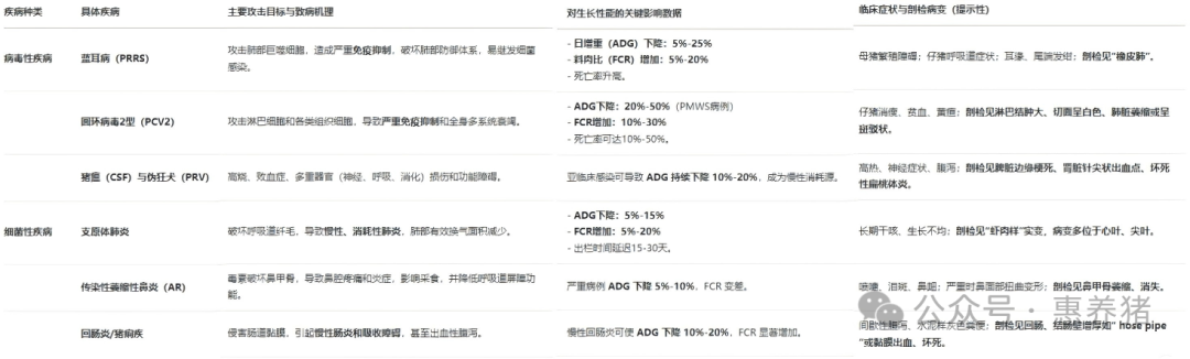 三、育肥猪生长缓慢的主要疾病性因素详解表