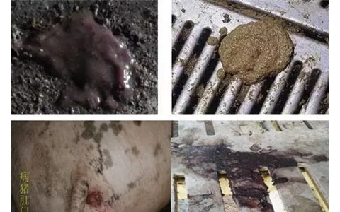 1)临床主要表现为出现血色水样腹泻,病程稍长时,排黑色沥青(柏油)样稀粪。有时粪便里会有大量的未消化的的饲料颗粒。