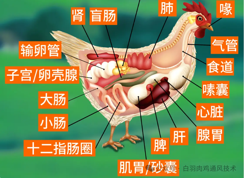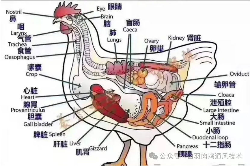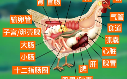 7、盲肠在小肠和大肠的交接处的两侧各有一个盲袋,称为盲肠。正常健康的成鸡盲肠的长度约15厘米。盲肠的确切作用还个十分清楚,不过对食物的消化作用不大。盲肠内有—些纫菌活动,似乎与鸡的免疫力有关。