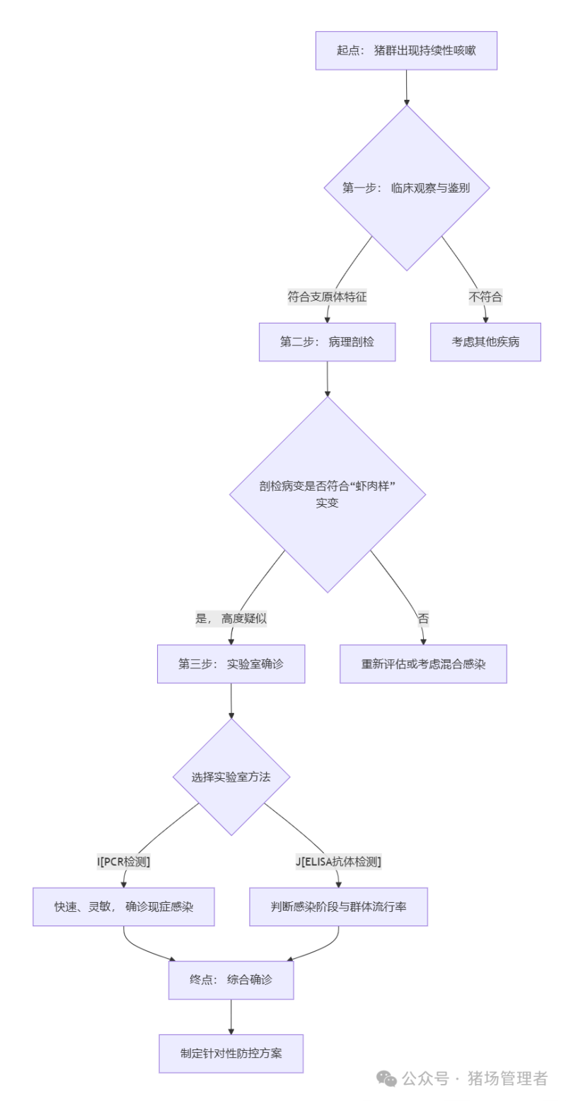 当临床判断指向支原体时,我们需要一套系统的排查流程来最终确诊。下图清晰地展示了这一过程: