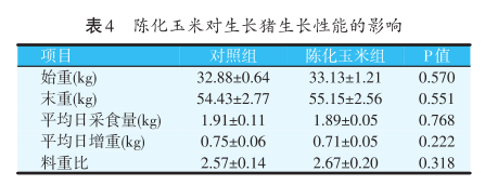 2.2 陈化玉米对生长猪生长性能的影响(见表4)