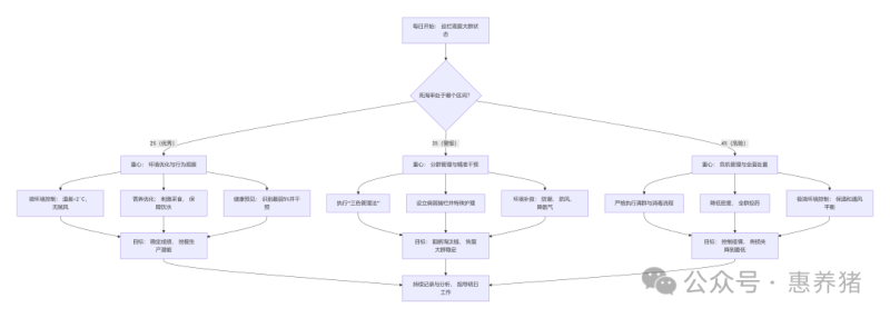 红色群(病患群):出现明显临床症状的猪只。每日工作重点:立即隔离,进行个体治疗(注射抗生素等),并记录病历,用于后续分析。