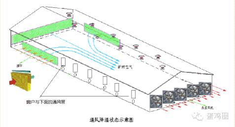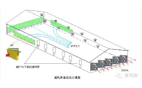 进风量与排风量相匹配。进风口风速与负压、小窗、鸡舍横截面积等因素相关,决定风从哪里进入鸡舍,风的流向和速度很重要。
