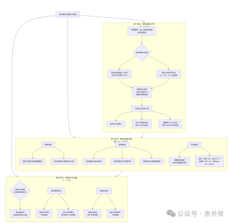 在现代集约化猪场,平均死胎率多集中于全产仔数的5%上下,若短期内跨批次显著上升(如从5%升至10%+),需视为“异常事件”,应启动系统性排查。