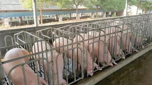 一排30-50头定位栏母猪共用一个通槽采食、饮水,对于提高母猪采食量、增加母猪饮水量有很大的帮助,过去在现代化规模农场非常流行。但这样的通槽,也给非瘟病毒的快速传播提供了便利。因此,很多复产的猪场都把通槽改为单个料槽和饮水器,或做隔断,做成几头母猪共用的小通槽。
