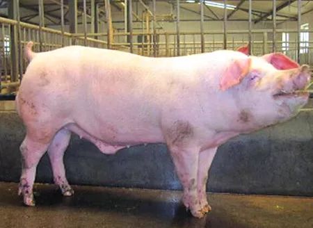 法系猪繁殖性能好,产活仔数平均14头,其体型较差,生长速度较慢,生长后期料比高,母猪营养水平需求高,若营养跟不上易发生产后瘫痪,法系猪主要长白、大白优秀,杜洛克无特点。