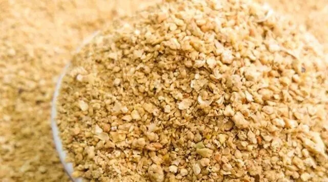 对饲料的形状、颗粒大小、颜色、气味、质地等指标进行鉴别。豆粕呈片状或粉状,有豆香味。纯豆粕呈不规则碎片状,浅黄色到淡褐色,色泽一致,偶有少量结块,闻有豆粕固有豆香味。而掺入了沸石粉、玉米等杂质后,颜色浅淡,色泽不一,结块多,可见白色粉末状物,闻之稍有豆香味,掺杂量大的则无豆香味。