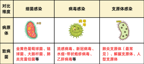 以下是常见微生物在形态结构、繁殖方式及致病性上的主要差异: