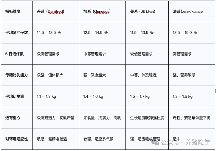 全球主流生猪品系遗传特性与选育导向的横向评估