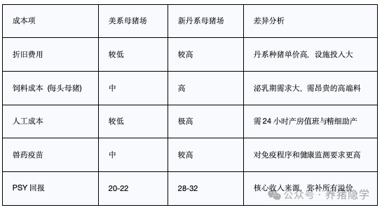 引入新丹系涉及到高昂的引种费用。除了直接的购猪款,还包括生物安全隔离、设施升级、员工培训以及管理流程重塑的成本。如果一个猪场无法将PSY从20提升到28以上,那么高昂的引种溢价将成为沉重的财务负担。