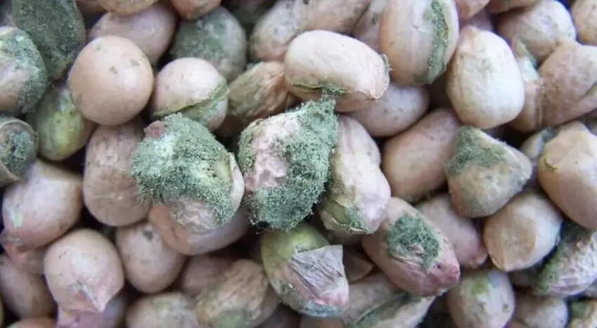 花生粕如果水分偏高、或者保存环境湿度过高,温度适宜(25~40°C),很容易滋生黄曲霉,导致黄曲霉毒素超标,所以订购或使用每批花生粕原料都需严格检测黄曲霉毒素,且储存时间不宜过长。