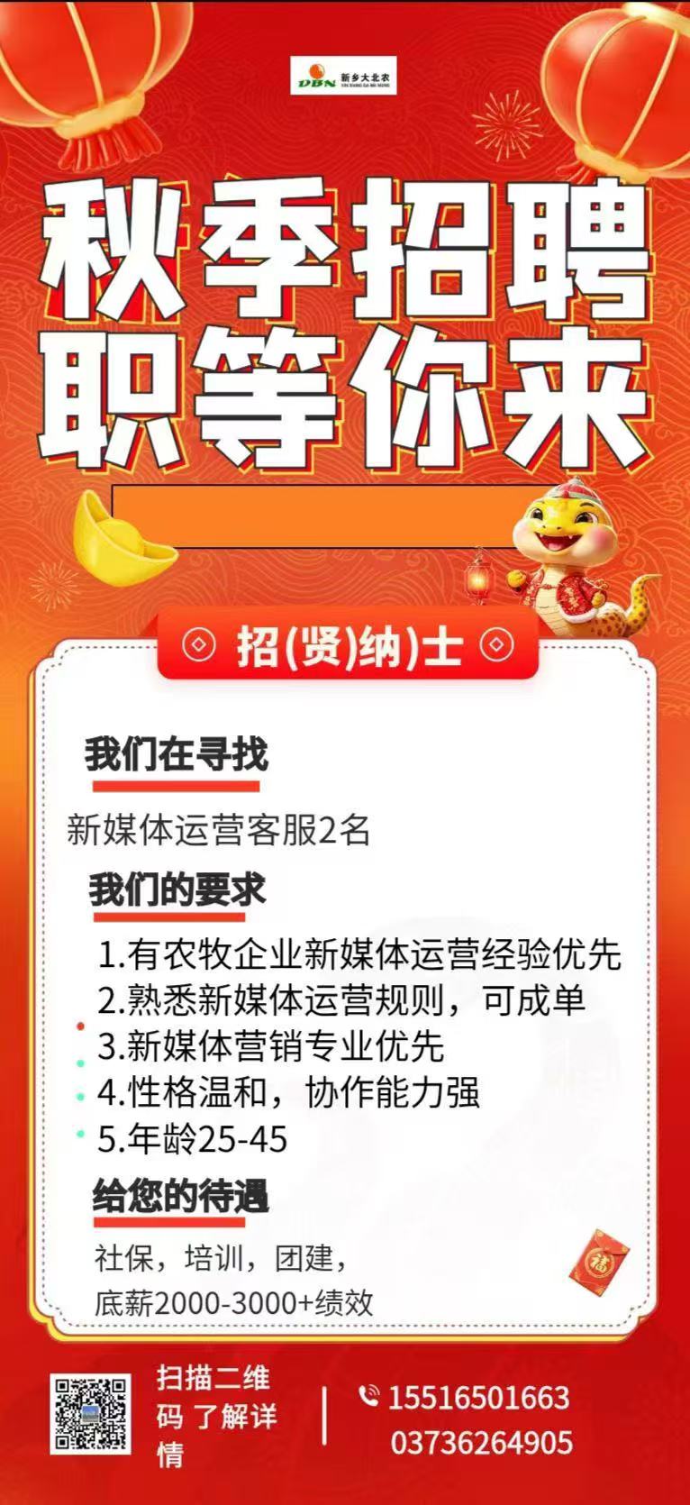 新乡市大北农农牧有限责任公司秋季招聘信息