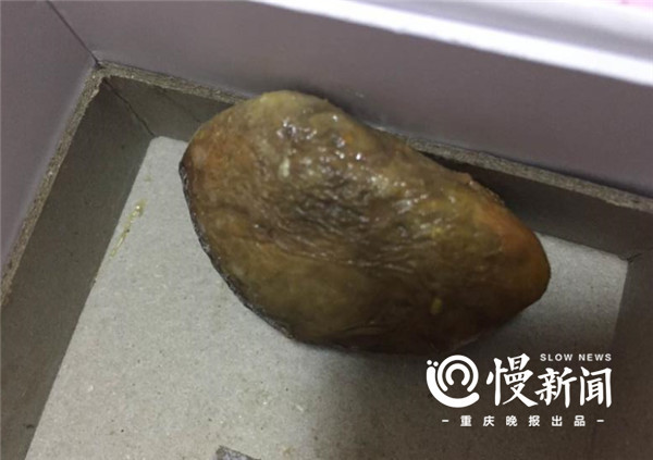 上游慢新闻-重庆晚报记者联系上李先生,从他提供的这块“鸭宝”图片中看到,形状似椭圆形,外表呈黄色,其间还有些发黑。