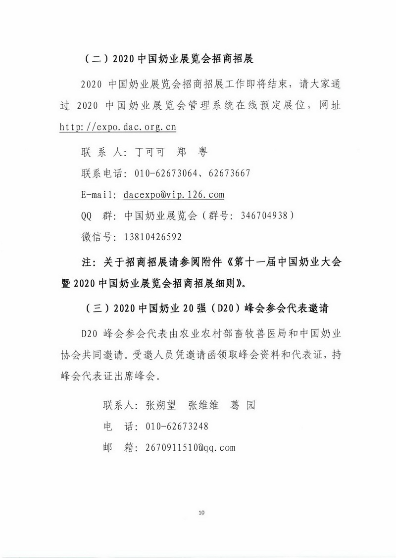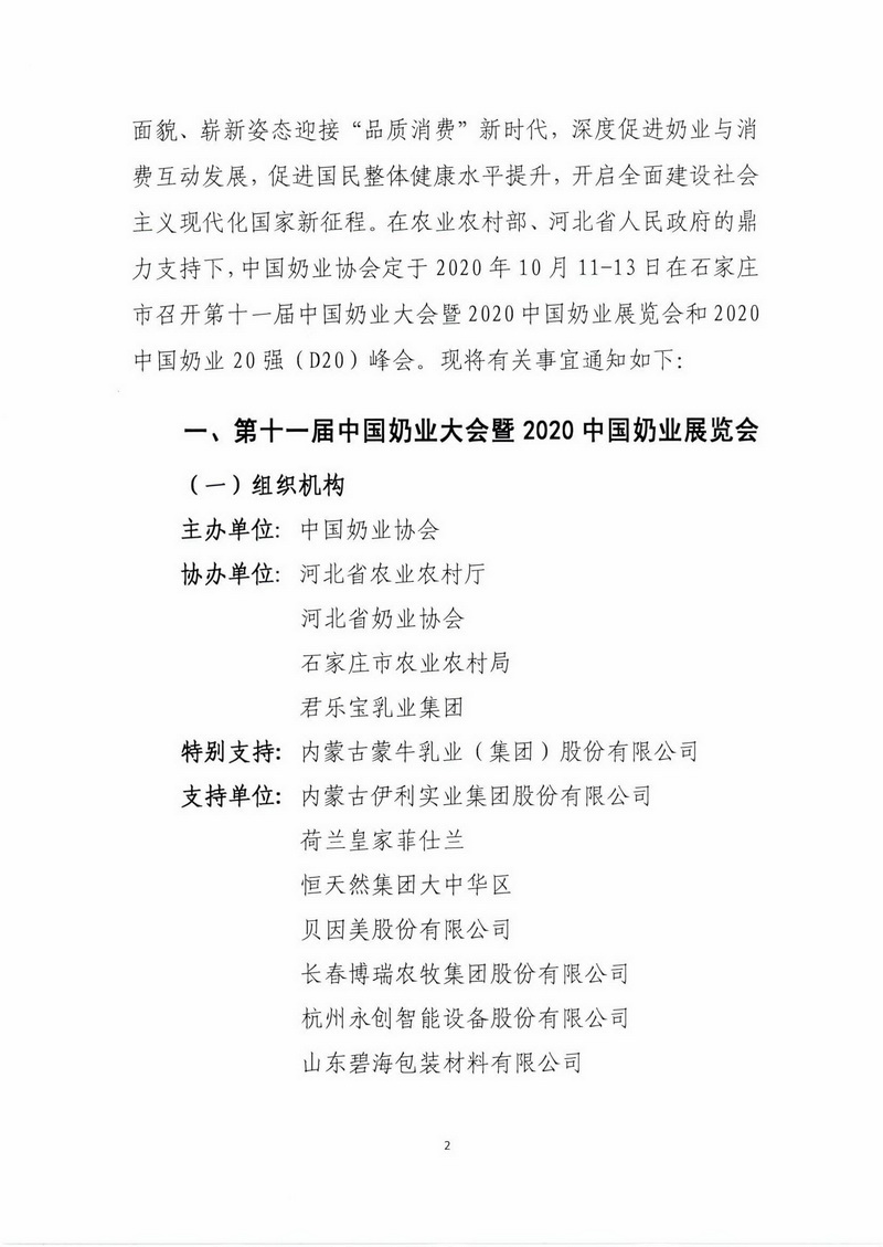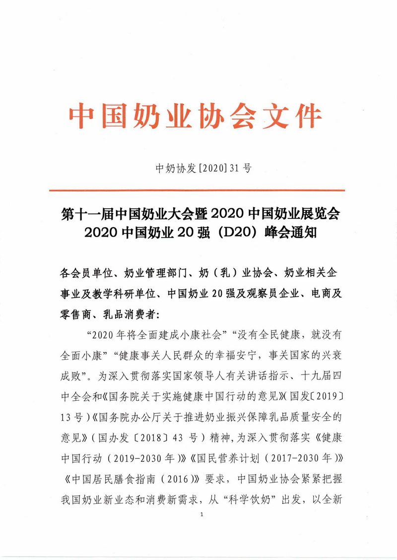 第十一届中国奶业大会暨2020中国奶业展览会 2020中国奶业20强(D20)峰会通知
