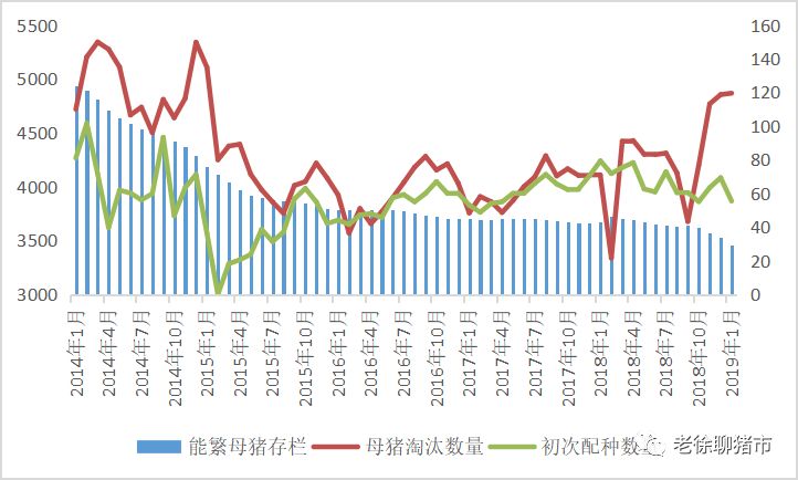 青松农牧河南及鲁苏皖市场调研中发现,一方面原种场损失严重,导致种群供给压缩;另一方面,养殖户信心不足,各地区均有补栏仔猪情况,母猪补栏多为观望,与下半年相比,上半年没有强烈的补栏欲望。2019年猪市,疫情风险仍然存在,预计整体种群存栏恢复缓慢。