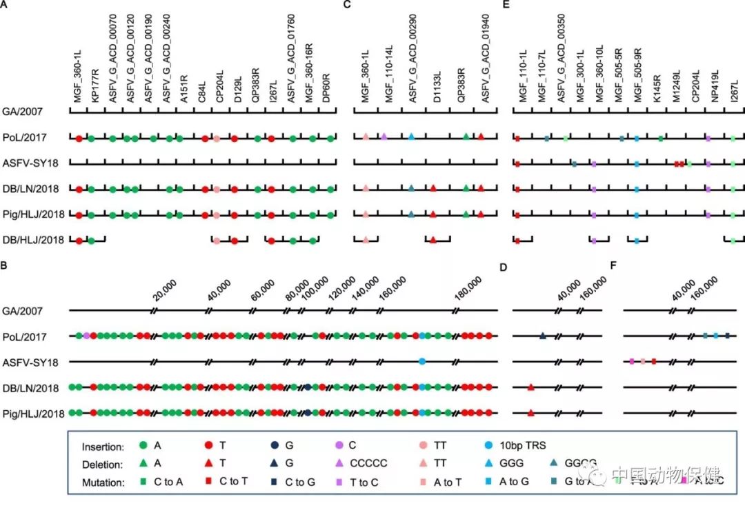 自2007年格鲁吉亚发现ASFV后,II型基因型不断进化。本研究表明,核苷酸插入和缺失频繁出现在ASFV中,甚至一些基因组的变化改变了ORFs。这些ORFs的改变对ASFV的影响还有待研究。