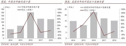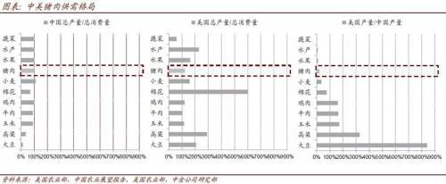 从基本框架上,猪肉供需格局遵循“高自给率+高市场化”。关于抛储,冻肉储备成本高,且我们估算储备量占国内消费量不足2%,抛储难改变价格趋势。关于进口,国内猪肉产量约5500万吨,占全球48%;相比下,全球总出口量仅约850万吨,而国内近三年进口量在119~ 162万吨,占国内消费量不足3%。其中,美国猪肉产量仅有中国22%,且自给率仅有122%,美国出口猪肉的潜力相对有限。近五年美国对中国年出口冻猪肉平均约16万吨,对国内价格影响不大。