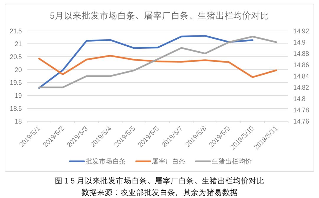 就往年 5 月后期的白条销量来看,3 月底 5 月初最低点,而 5 月中旬开始有所增长,在 5 月中下旬将出现一个小高峰,当然今年也不例外,而这个点也成为部分家庭猪场出栏的一个预期节点。