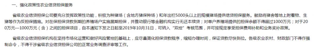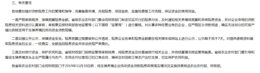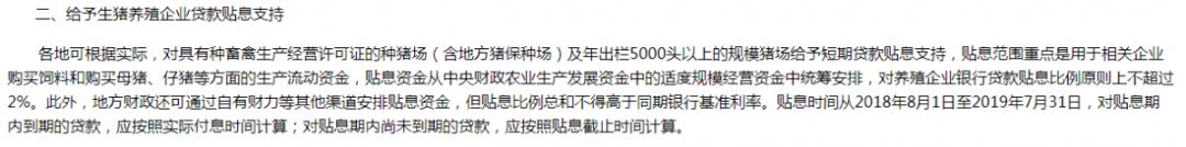 强化政策性农业信贷担保服务短期贷款贴息支持只针对种猪场和规模猪场,压根没小散户什么事儿。