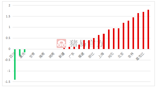图1 不同地区猪价涨跌情况