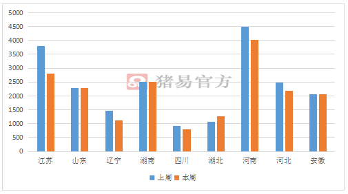 图3 本周与上周部分省份平均屠宰量变化