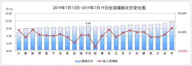 7月第3周,全国猪粮比价为9.36:1,较上周(9.01:1)上涨3.88%。