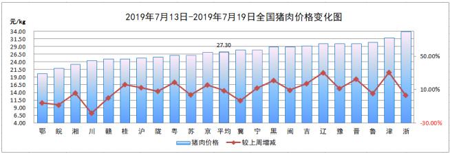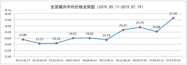7月第3周,全国猪肉平均价格27.30元/kg,较上周(25.08元/kg)上涨8.85%。