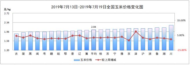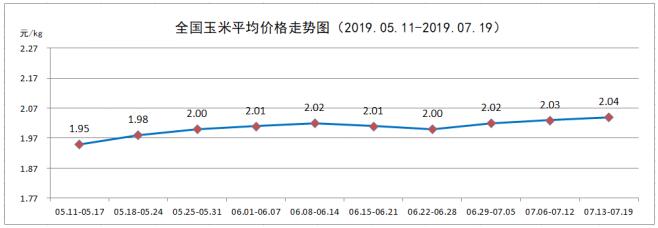 7月第3周,全国玉米平均价格2.04元/kg,较上周(2.03元/kg)上涨0.49%。