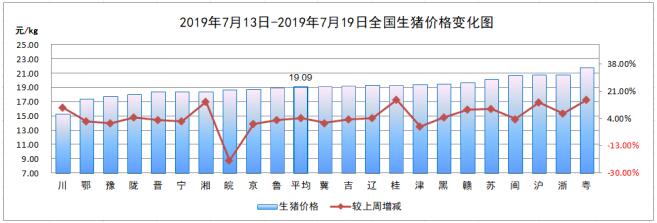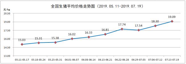 7月第3周,全国生猪平均价格19.09元/kg,较上周(18.30元/kg)上涨4.32%。