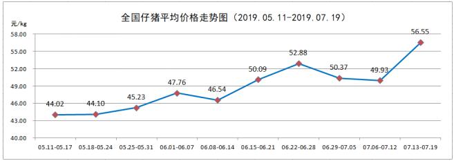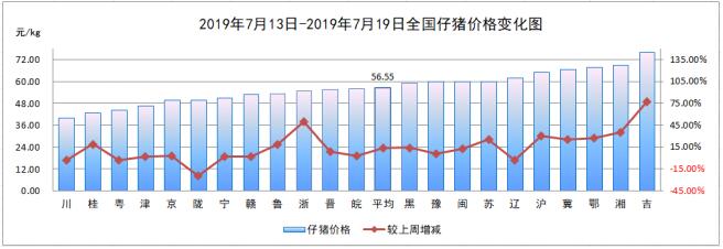 7月第3周,全国仔猪平均价格56.55元/kg,较上周(49.93元/kg)上涨13.26%。
